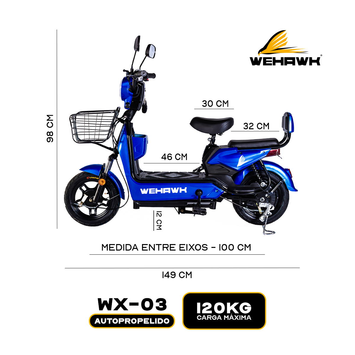 Bicicleta Scooter Eletrica Basket Wx-03 Wehawk 500w Bat 48v 12ah Azul Safira