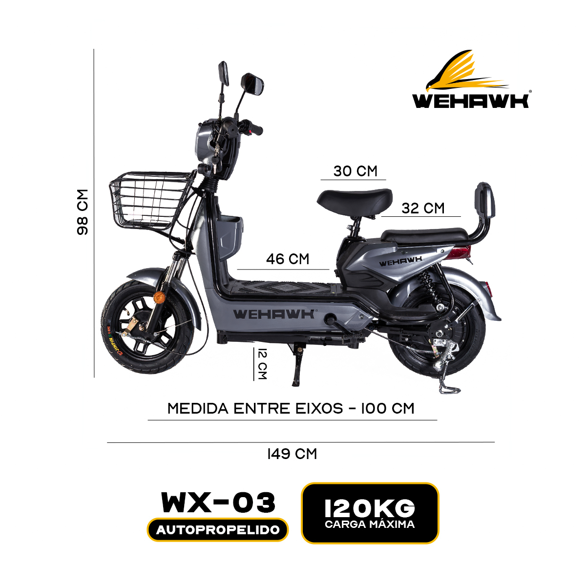 Bicicleta Scooter Eletrica Basket Wx-03 Wehawk 500w Bat 48v 12ah Cinza