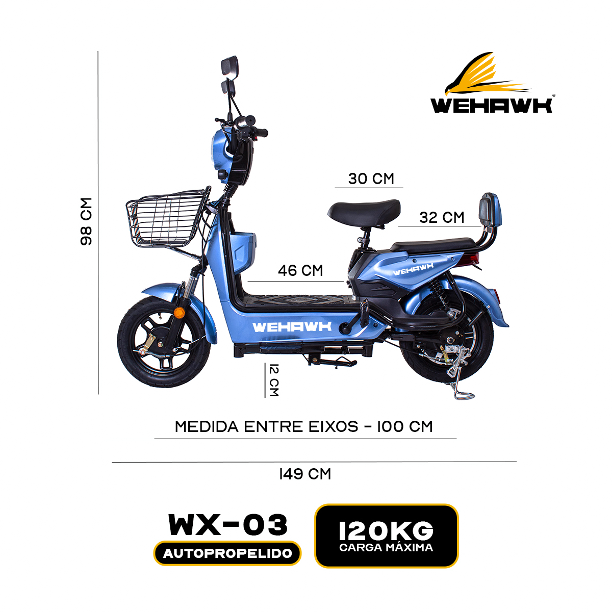 Bicicleta Scooter Eletrica Wx-04 Wehawk 450w Bat 48v 12ah Azul Miami
