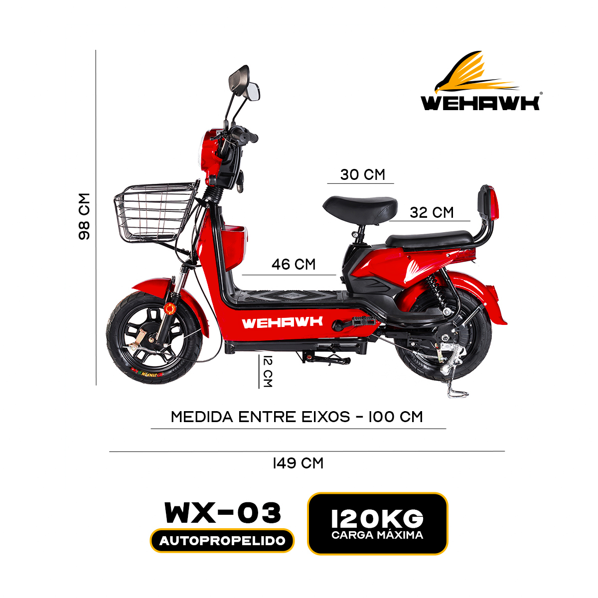 Bicicleta Scooter Eletrica Basket Wx-03 Wehawk 500w Bat 48v 12ah Vermelha