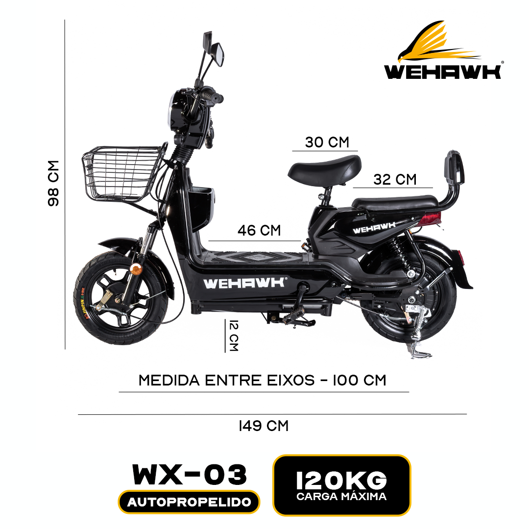 Bicicleta Scooter Eletrica Wx-04 Wehawk 450w Bat 48v 12ah Preta