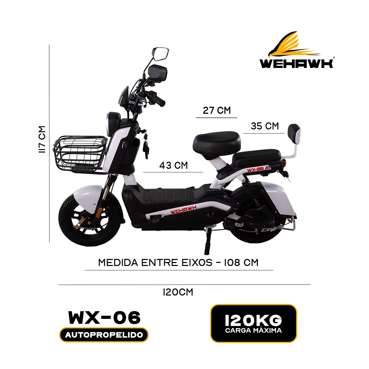 Bicicleta Scooter Eletrica Wx-04 Wehawk 450w Bat 48v 12ah Preta
