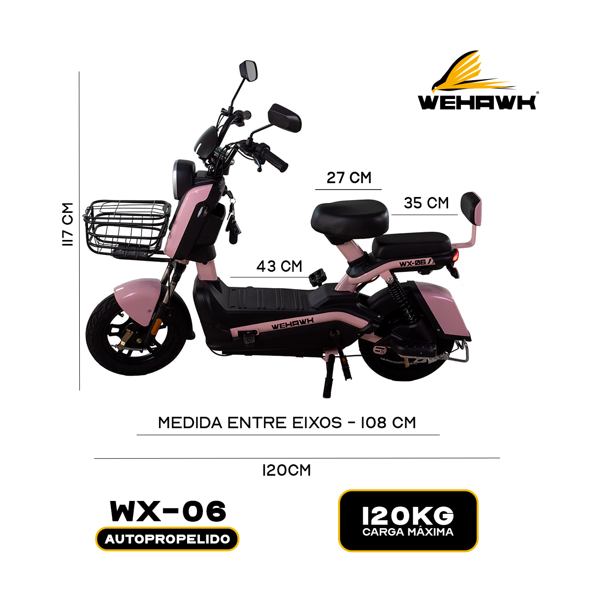 Bicicleta Scooter Eletrica Basket Wx-03 Wehawk 500w Bat 48v 12ah Rosa
