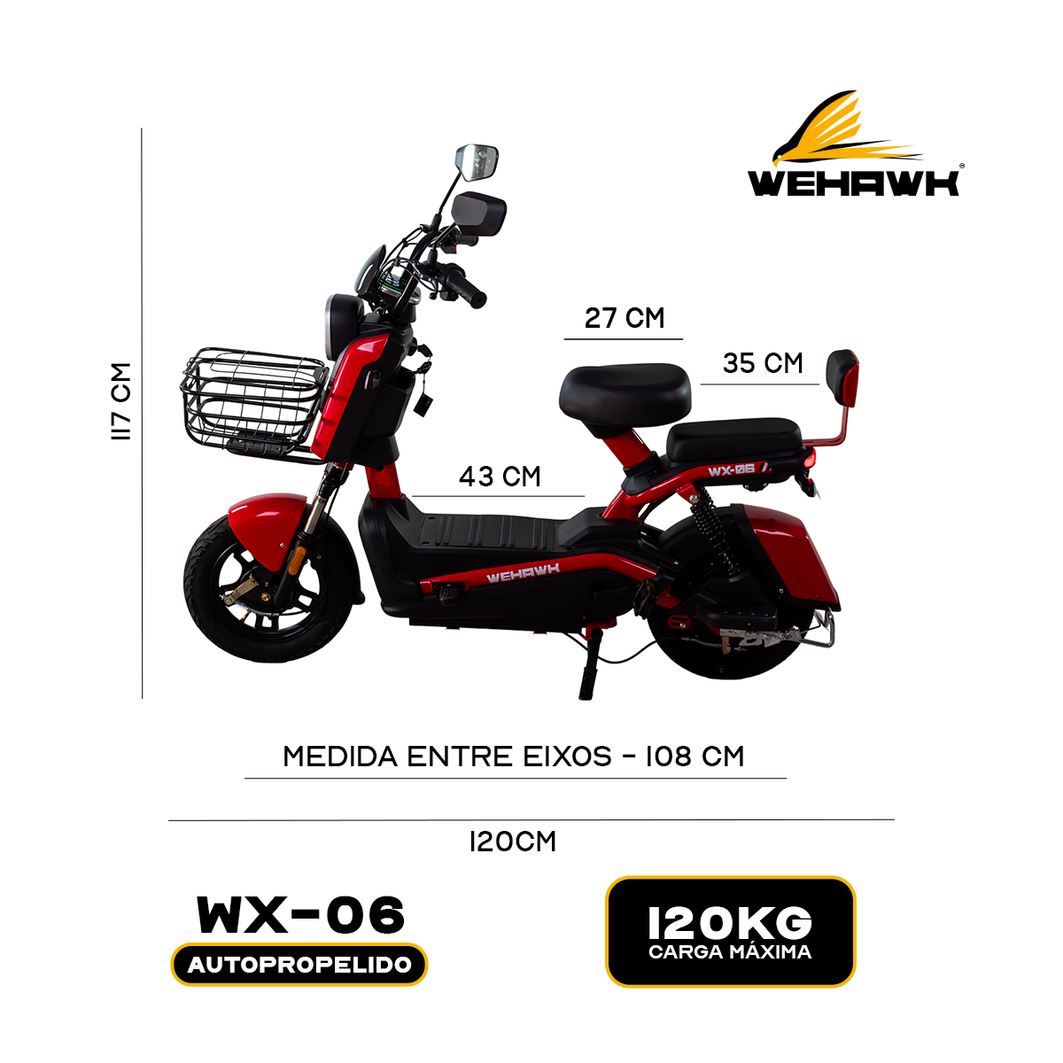 Bicicleta Scooter Eletrica Basket Wx-03 Wehawk 500w Bat 48v 12ah Vermelha