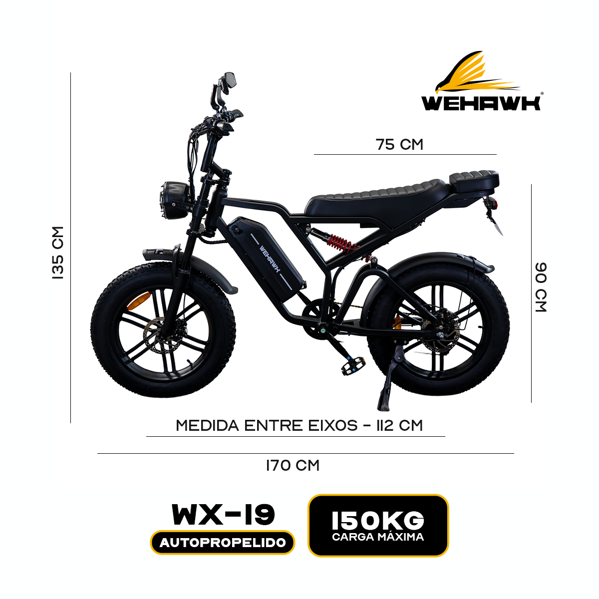Bicicleta Scooter Eletrica Wx-19 Wehawk 750w Bat 48v 15ah Litio Preta C/ Banco Preto