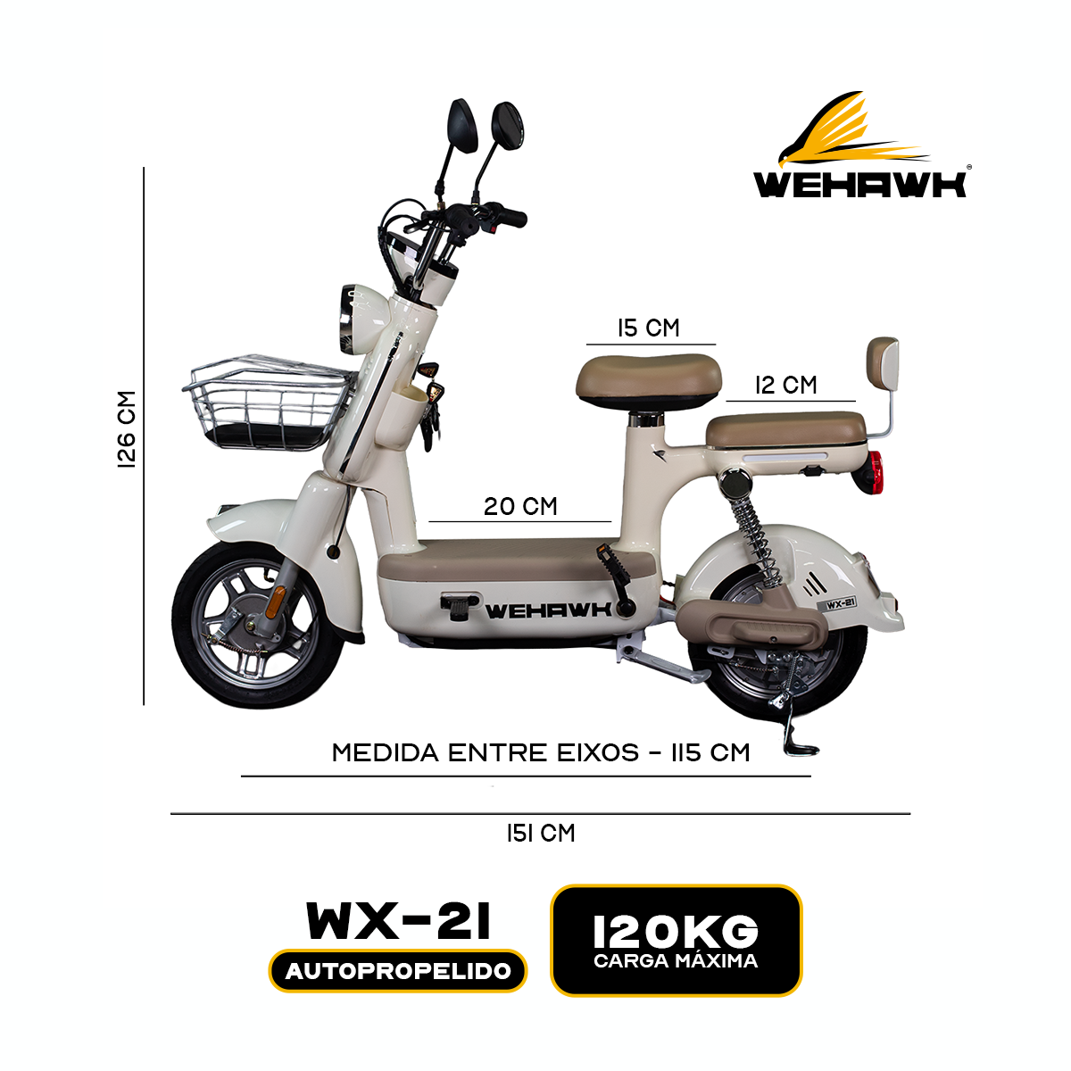 Bicicleta Scooter Eletrica Wx-21 Wehawk 500w Bat 48v 20ah Marfim - Nfc