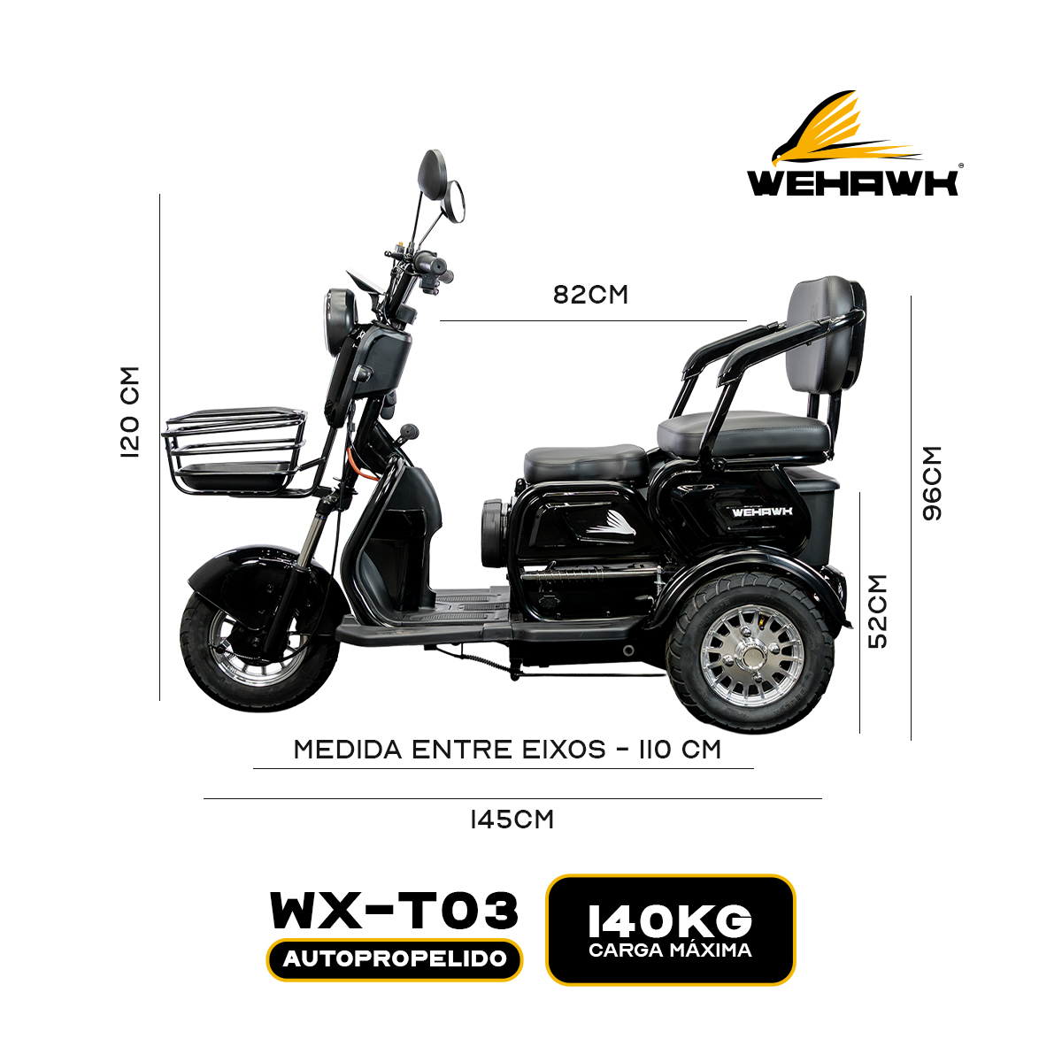 Triciclo Eletrico Mult 3 Wx-T03 Wehawk 800w Bat 48v 20ah Litio 3 Lugares Preto